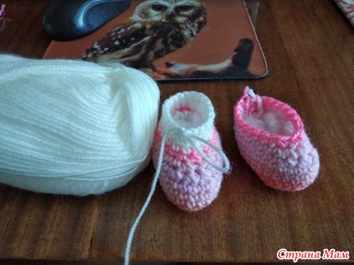 Вернемся к ботиночкам. Для них нужно связать пряжку-ремешок.