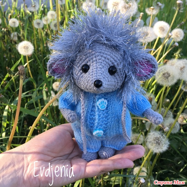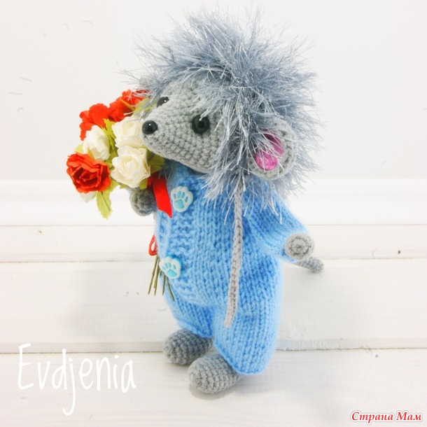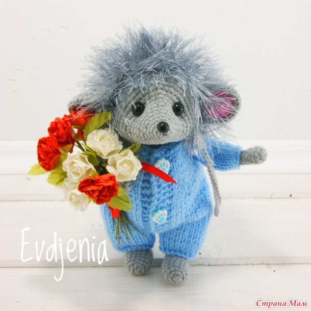 Мышка вяжется крючком, одежда для неё - спицами.
