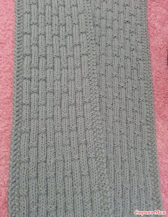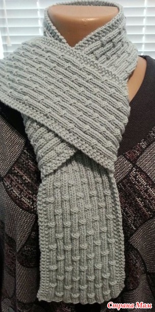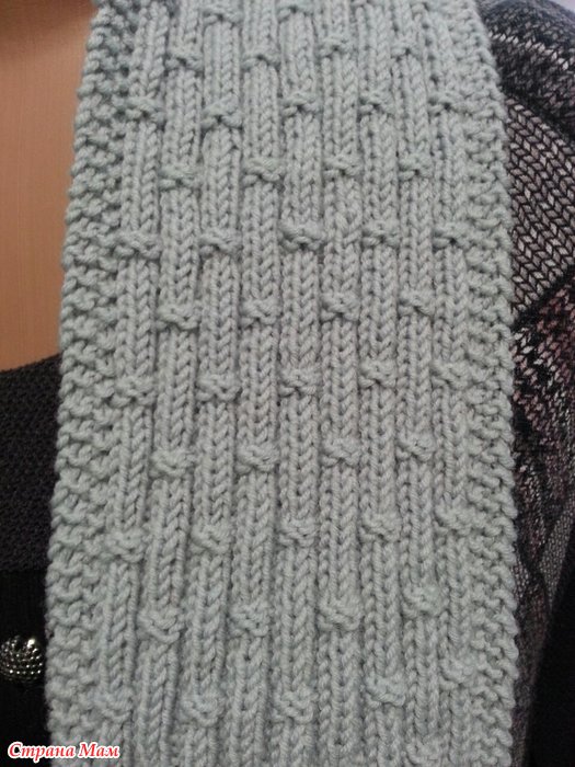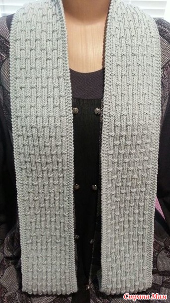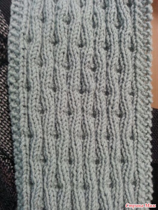 Раппорт узора – 8 петель + 3 петли до раппорта + 5 петель после раппорта. В высоту вязать 1 раз с 1-го по 14-й ряды, далее вязать с 3-го по 14 ряды. Закончить шарф 10-м рядом.