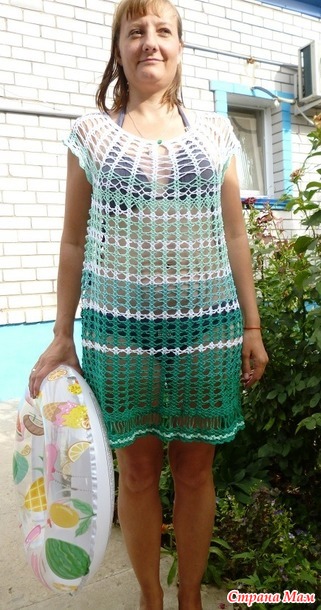 доброго всем здоровья! многие девочки вяжут тунички для пляжа, вот и я , соблазнилась! вязала из остатков ИРИСА, крючок №2, вес 220гр. показываю на невестке. на воде не получилось сделать фотки, забыли фотик дома всем тёплого лета, хорошего отдыха!!!! Читать полностью