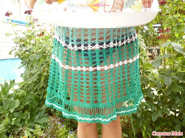 доброго всем здоровья! многие девочки вяжут тунички для пляжа, вот и я , соблазнилась! вязала из остатков ИРИСА, крючок №2, вес 220гр. показываю на невестке.