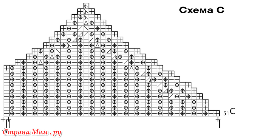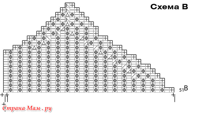 Вязать, как показано на схеме. В высоту выполнить 1 раз с 1-го по 35 (37-й) ряды.