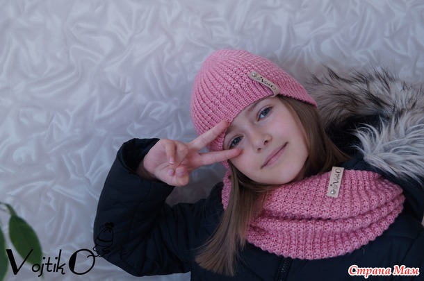 Эффект спиц и лаконичность в украшении - нет съемного декора (только кожаная бирка с моим логотипом), акцент в комплекте сделан только на разные узоры крючком для шапки и снуда.