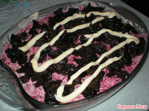 режем чернослив, солим, мажем майонезом