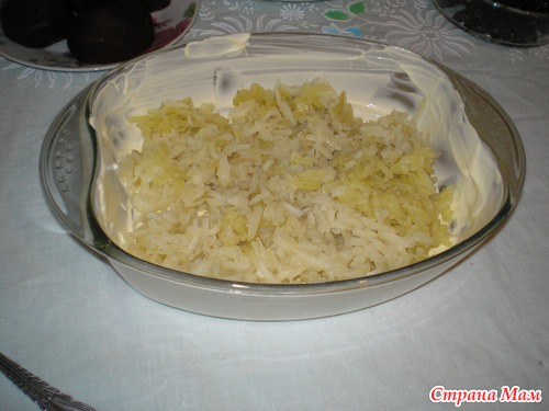 Берем глубокую посудину, я обычно делаю в такойсмазываем ее майонезом