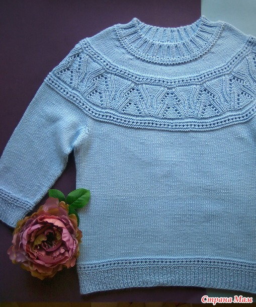 Обычно наоборот, бабушка вяжет для внучат. Но у нас настало такое время, когда бабушка уже не может вязать. Выбрала для неё модель с круглой кокеткой.
