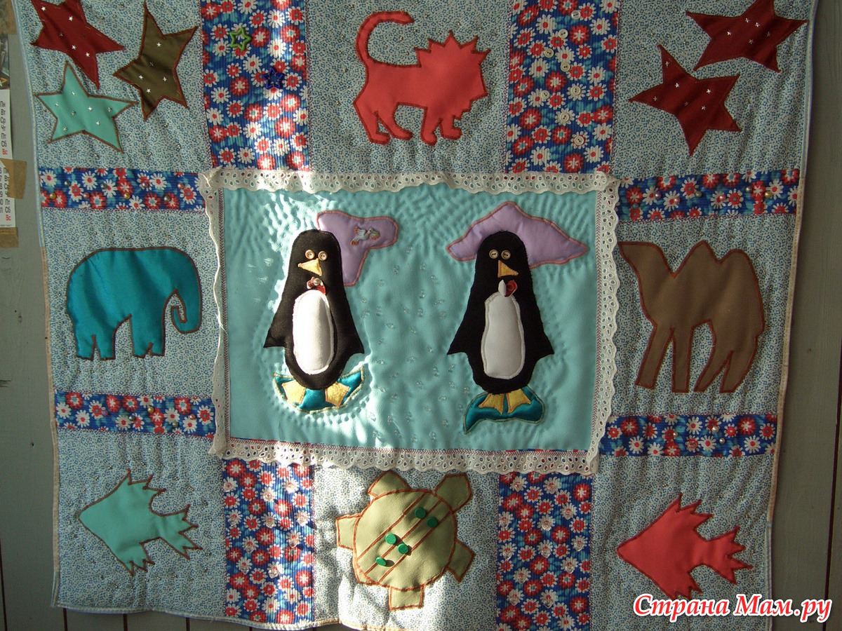 Но... Лежала неоформленная объемная аппликация "Пингвины". Вот они и пошли в центр. По периметру животные и звезды.