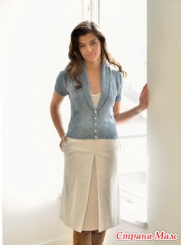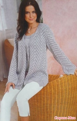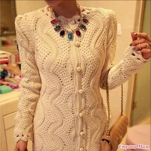 3 Жакет. Самая вариативная вещь. Можно снять, если жарко. Цвет любой и узор тоже не навороченный. Можно даже простенький ажур, сквозь который будет видна белая или голубая блузка. Сейчас в моде укороченные жакеты и рукав 3/4. Отличный вариант для офиса!