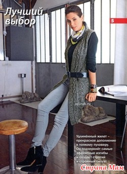 4. Жилет. Можно по фигуре, а можно до колена, широкий и с боковыми разрезами, типа шазюбля. В последнем случае подойдет какой-нибудь вертикальный узор.