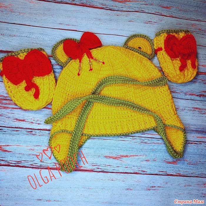 Вязала из акрила и комплектик с ушками из пряжи Газзаль (в данном случае, и у шапочки и у царапок вывязаны вторые подклады для утепления). Крючки 2 и 2.5 Чепчик с листочками подглядела у какой - то испаноговорящей вязальщицы на видео.