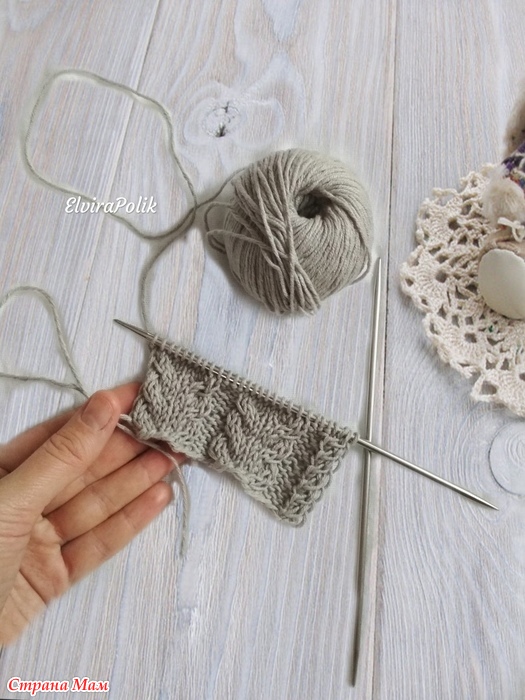 2 лиц. п.снять на дополнительную спицу за работой, 1 п.лиц, 2п. лиц с дополнительной спицы, 3 п.изн., 2 лиц.п.снять на доп.спицу за работой,2 п.лиц, 2 лиц.п.снятые на доп.спицу, 1 п.лиц. , 2лиц. п.снять на дополнительную спицу перед работой, 2 лиц п., 2 снятые п.с доп спицы, 3 изн.п., 2 лиц.п.снять на доп.спицу за работой,2 п.лиц, 2 лиц.п.снятые на доп.спицу, 1 п.лиц. , 2лиц. п.снять на дополнительную спицу перед работой, 2 лиц п., 2 снятые п.с доп спицы.