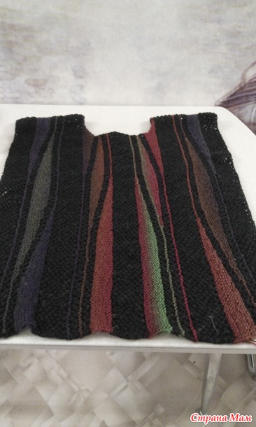 Теперь сборка. Я буду вязать горловину резинкой 2/2. Манжет тоже2/2. Низ 4 ряда платочки.