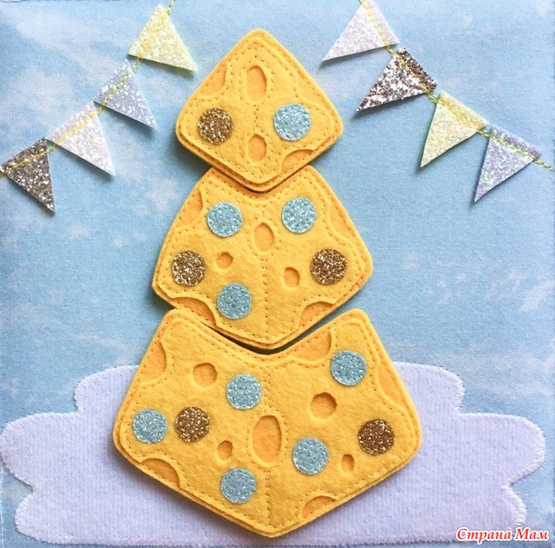 Размер страничек всего 15*15 см. Книжка собрана гармошкой. Выполнена из фетра и ткани.