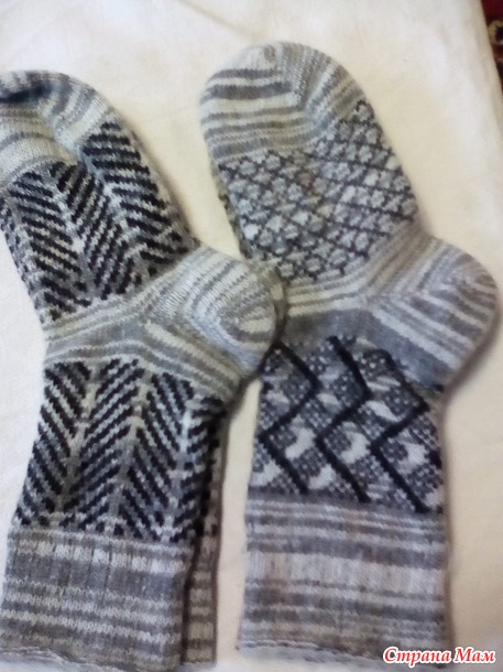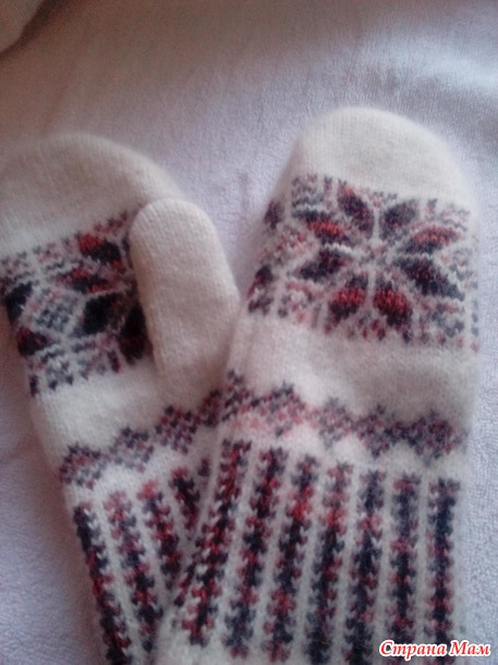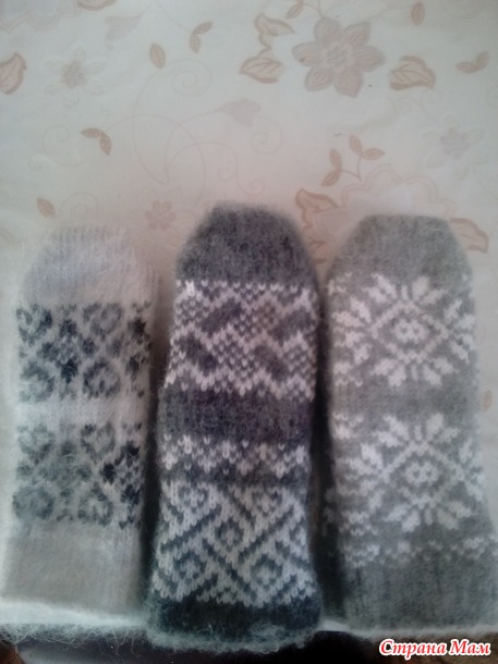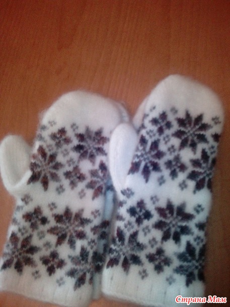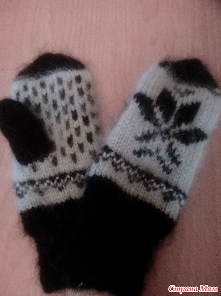 13. Варежки женские, ручная вязка, связаны в три нити, одна ангорка и две нити пух - 260 руб. Другие рисунки смотри в альбоме.