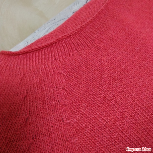 Хотела вообще без горловины, уговорила на минимальную обработку. Одела открытые петли и связала вроде 10 рядов с убавление плотности на точечку. Все хорошо село, носится с удовольствием.