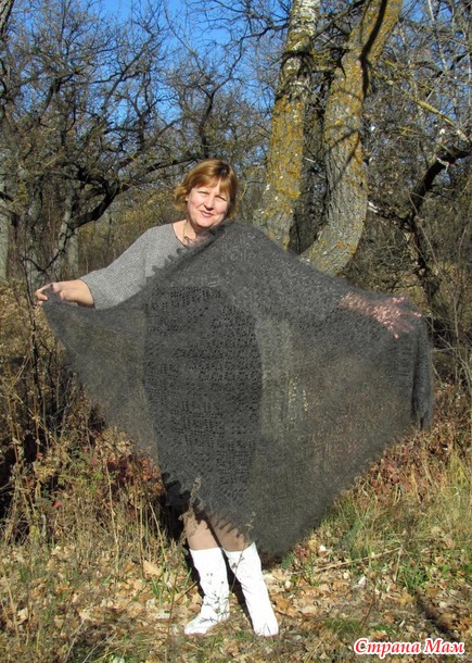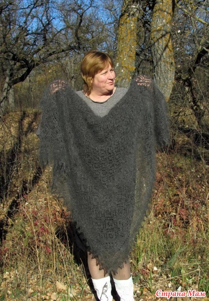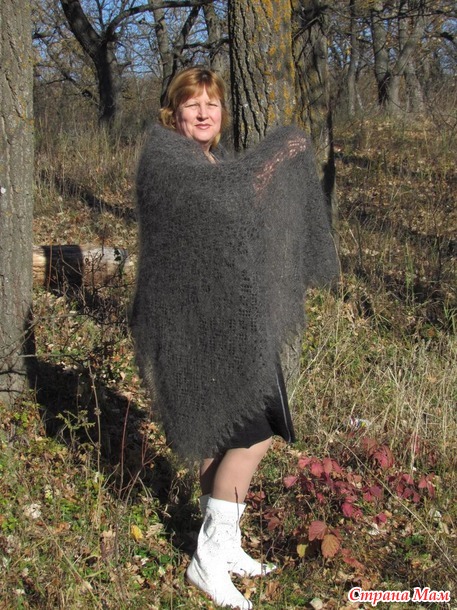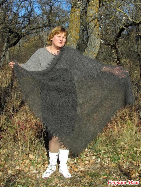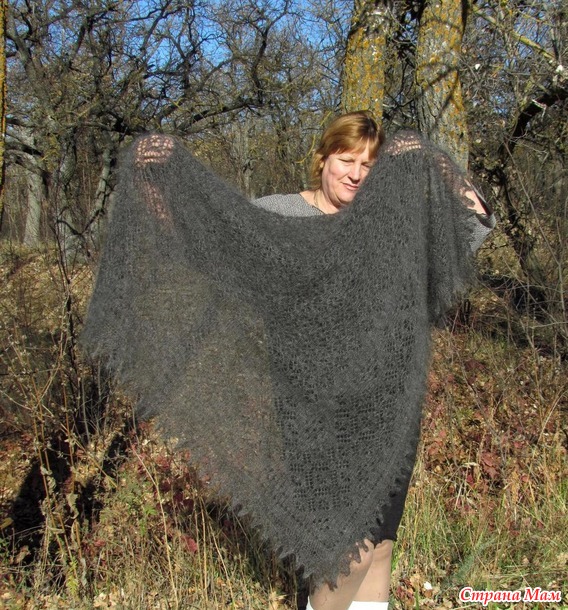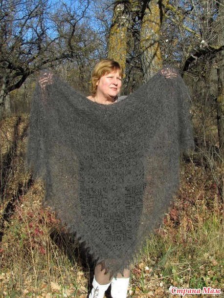 Здравствуйте....... сегодня хочу вам показать очередную пуховую ажурную шаль ---Стильный графит---