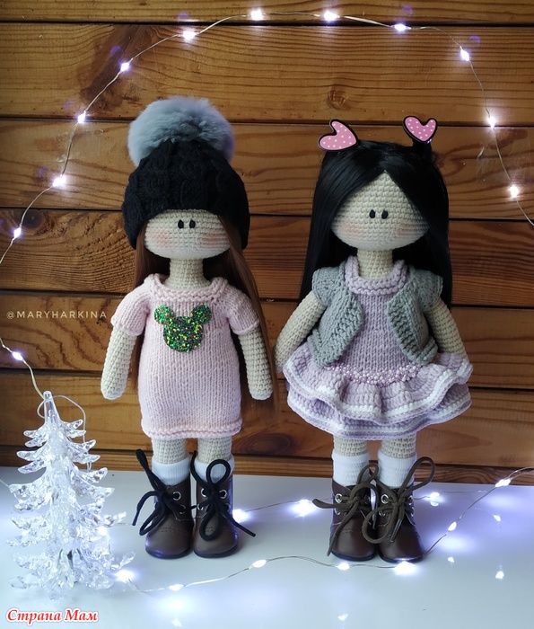 Всем привет! В преддверии нового года хочу показать игрушки, которые связала сама. Связаны крючком, одежда спицами, все можно снимать. Наполнитель холлофайбер.