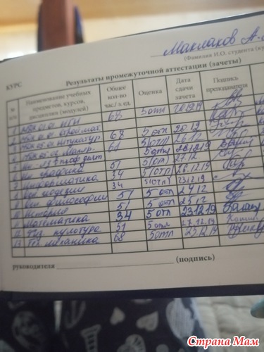 Вот например зачётка 2 сына