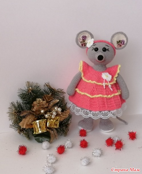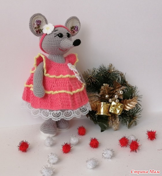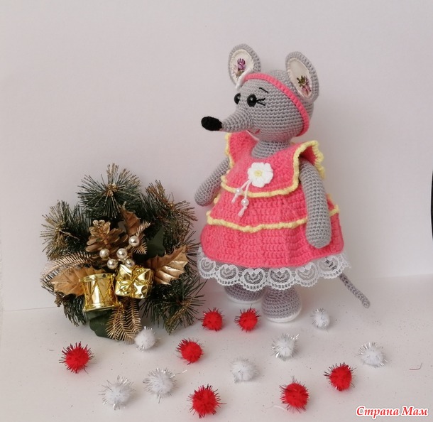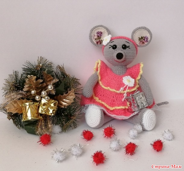 У нас на работе перед Новым Годом проводят благотворительную ярмарку "День добрых дел". Я тоже принимала участие. Связала Мышку, отдала. А тут смотрю у нас в группе конкурс красоты. Я, не долго думая, записалась, крючок, нитки в руки и связала ещё одну Мышку.