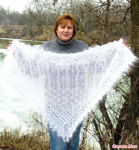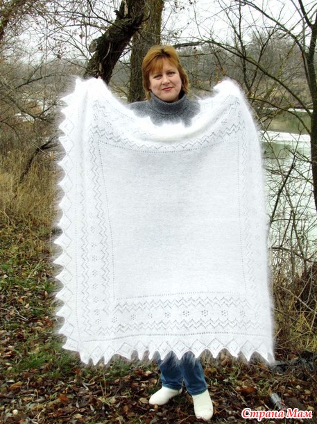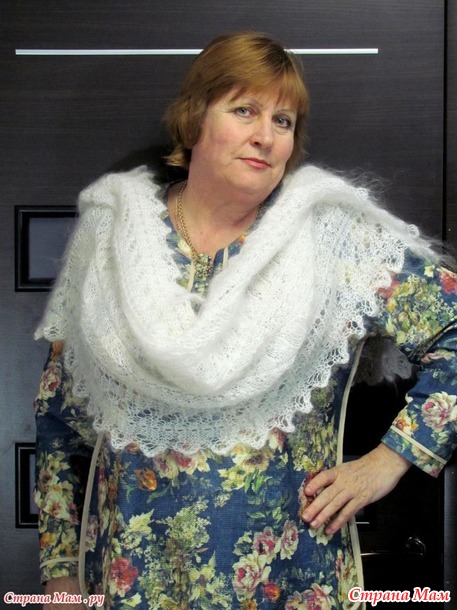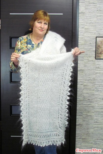 БелыЙ палантин --пух очень мягкий и длинный -ажурная,но плотная ручная вязка .Размер 1м55см на 45 см
