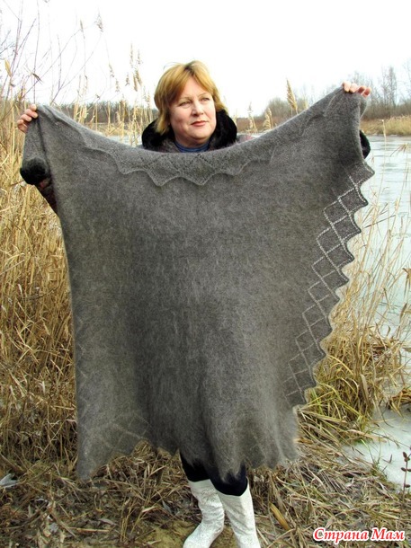 Пуховый платок-плед---по настоящему большой .Его размер 1м80см на 2 м в спокойном не растянутом состоянии.Ручная платочная вязка. Не распушен ,очень мягкий,не предъявляет особых требований в уходе и прослужит долгие годы.
