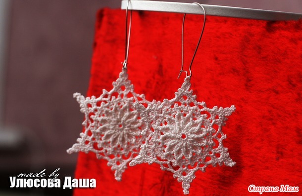 я тоже снежинок навязала на ёлку) серьги вязать не пробовала)