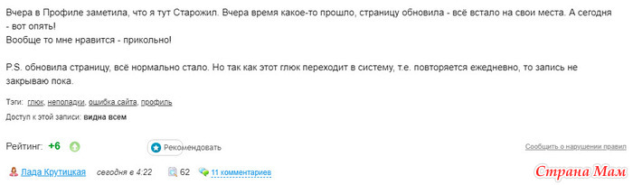 Вчера в Профиле заметила, что я тут Старожил. Вчера время какое-то прошло, страницу обновила - всё встало на свои места. А сегодня - вот опять!