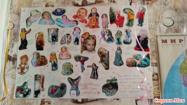 Был заготовлен плакат с ее фотками и всякими надписями и пожеланиями (повесили его ночью, когда дочка спала, утром она очень удивилась что раньше его не замечала