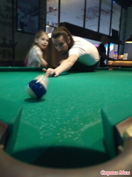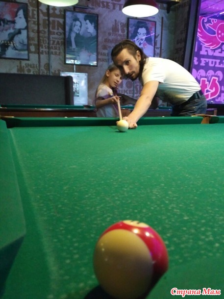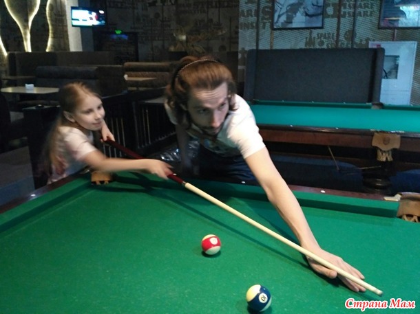 Кий был слишком длинный для дочки, муж нашел способ чтоб у дочки что-то получалось.