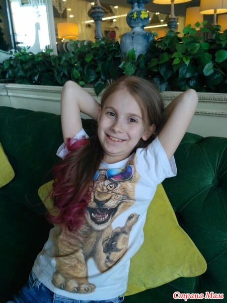 Еще она давно хотела розовые волосы, я давно заказала краску, пегмент прямого действия. Предложила ей, она естественно только за, покрасили кончики. Еще ей давно дарли щипцы для завивки детские, ей очень хотелось завиться, попробовали завить кончики, вроде даже почти получилось, не все завитушки удержались, но дочка была счастлива.