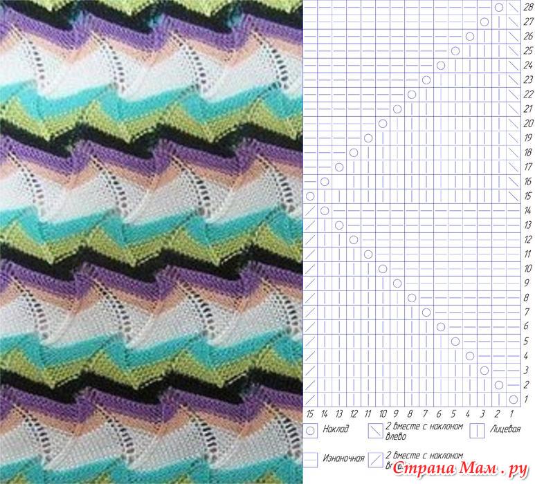 Ажурный волнистый узор: вязать по схеме. Повторять с 1го по 28 ряд.