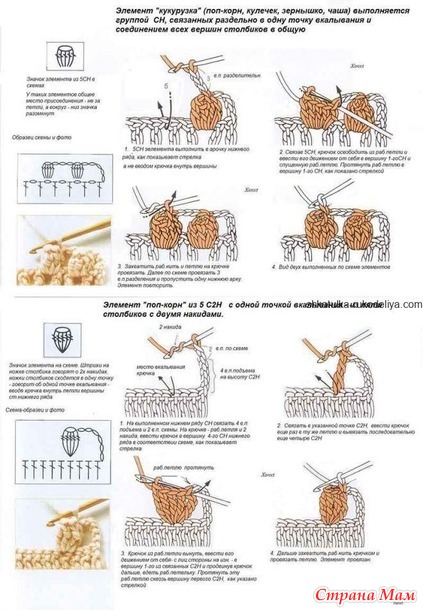 Вязание крючком для начинающих. 28 урок. Элемент "Кукурузка"