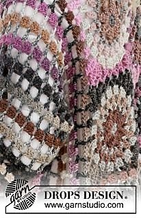 Далее вязать рукав, начиная с ИС: пропустить первые 15-15-14 групп из ст.с/н, закрепить серую нить с помощью 1 ст.б/Н в след. в.п., связать 3 в.п., 1 ст.с/н в ту же в.п. (=А.3с), А.3b 19 раз, А.3с. Развернуться и вязать 3-ий ряд в обратном направлении с ЛС — продолжить полосами-2 как прежде. Вязать прямыми и обратными рядами до 48-50-52 см. от квадратов — закончить после ряда с ЛС, обрезать нить.