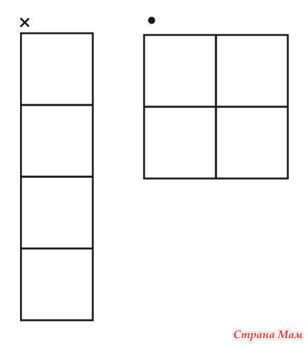 Полочка: соединить 4 квадрата в одну полосу, как показано на схеме с крестиком, способом, описанным выше.