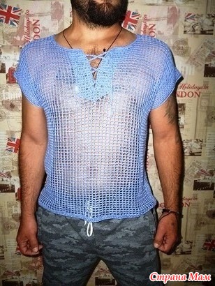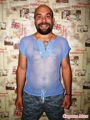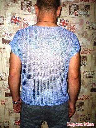 Доброго всем здоровья и хорошего настроения! подготовка к лету идёт полным ходом! сегодня хочу показать сеточку, для старшенького, сегодня ему стукнуло 40! вязала из АЛИЗЕ дуэт,(50гр-225м) кр№2,5 на 50размер пошло 200гр. после ВТО майка сильно вытянулась(10см), пришлось обрезать...