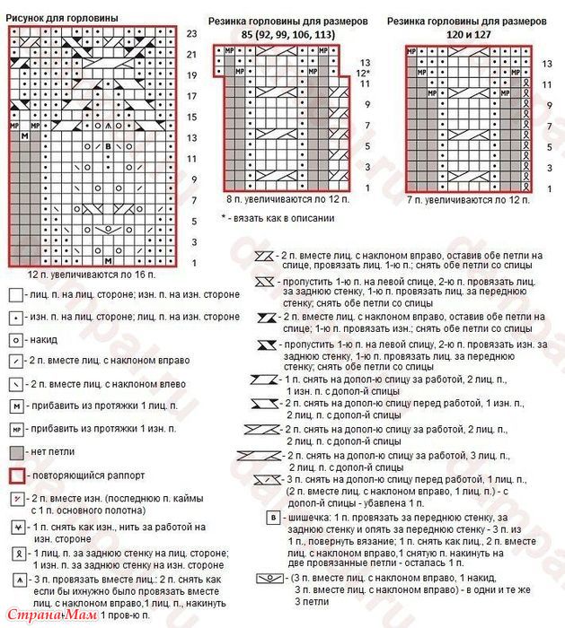 Связать ряды 1-11 по схеме резинки горловины для выбранного размера.