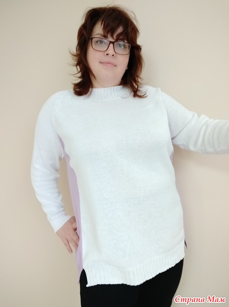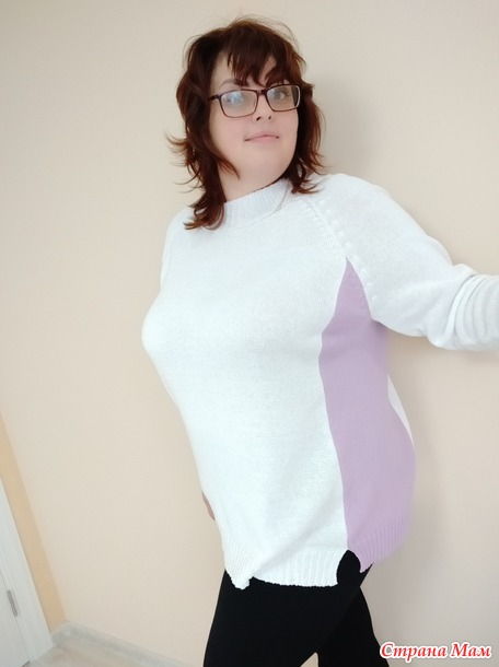 Вообще я как то перешла определённый этап в вязании и мне стало интересно связать что нибудь более сложное. Поэтому следующий свитер был мегаинтересным - с бочком, который я построила и связала дня за четыре для мамы.