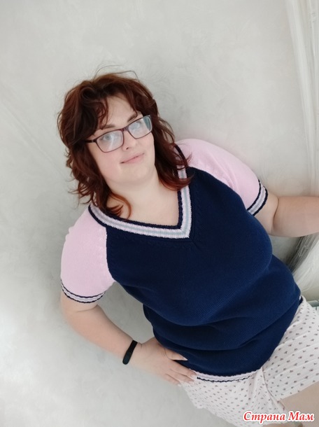 И вот раз лето ждём у меня ещё одна вещь. Майка, которую я связала быстро, а собирала мама дорогая две недели.