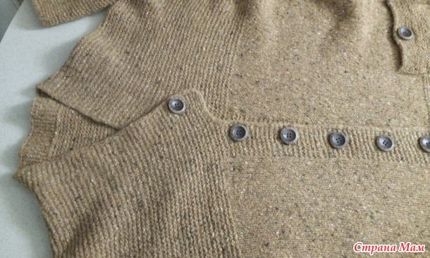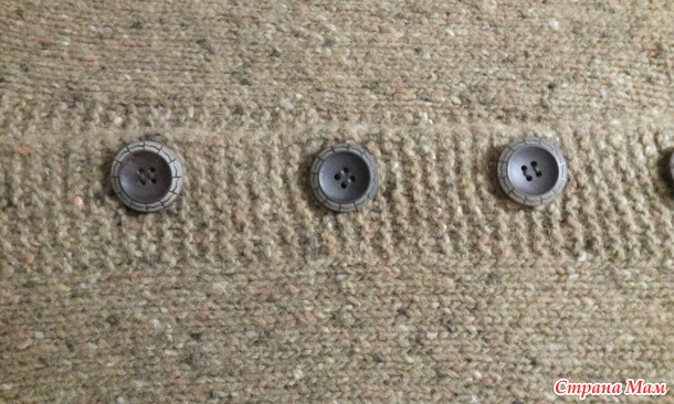 Ушло 600 гр. пряжи,280 м.в100 гр.итальянский сток. Спицы 3.5. Модель предлагалась на одной пуговице на воротнике,я купила деревянные и пришила даже на карманы,люблю когда все застегнуто.