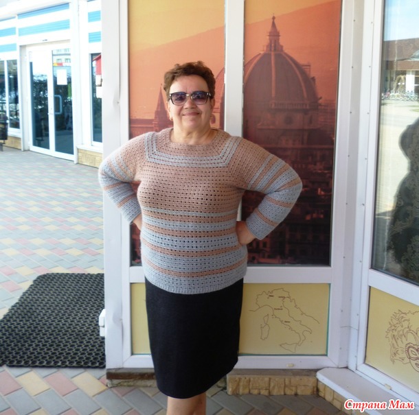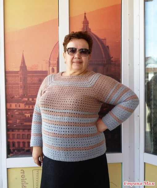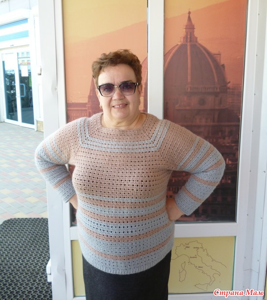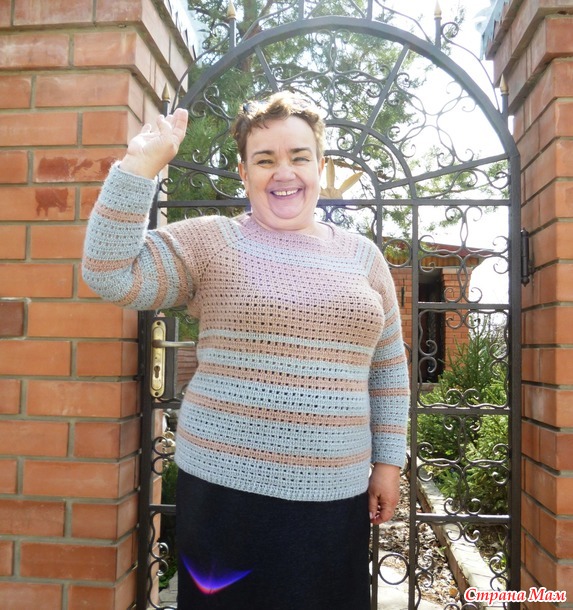Прекрасный джемперок, замечательная фотосессия! А где же здесь солидный размерчик, прошу прощения? Разрушили все стереотипы и остались стройной. Полоска быть!!!