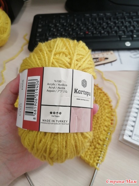 Пряжа у меня Kartopu Hola 50гр/150м, 100% акрил, цвет К1321, спицы 3,5мм