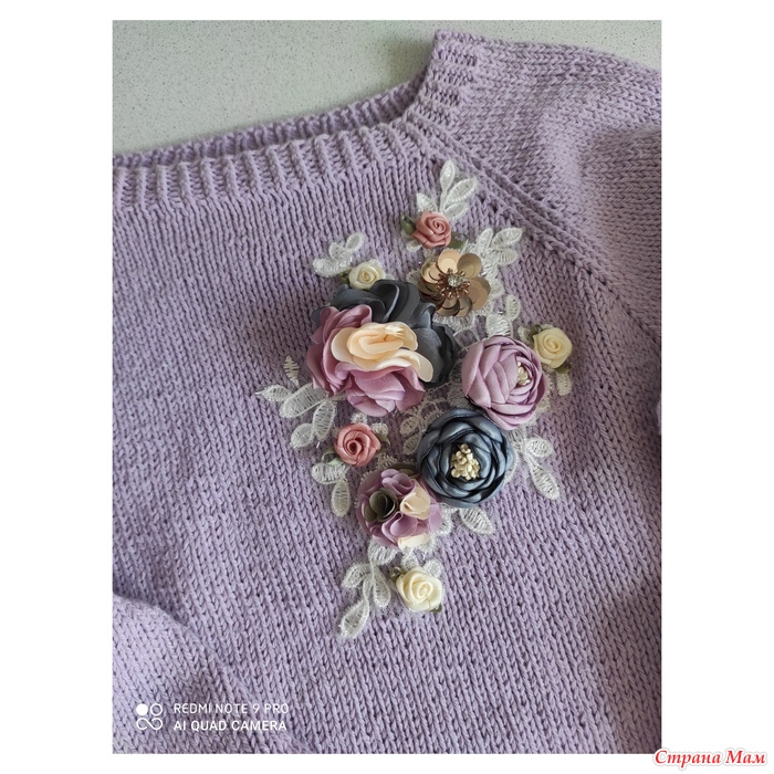 Распределяем петли: 1 п.реглана, 17 п.рукав, 1 п.реглана, 30 п.переда, 1 п.реглана, 17 п.рукава, 1 п.реглана, 30 п.спинки.