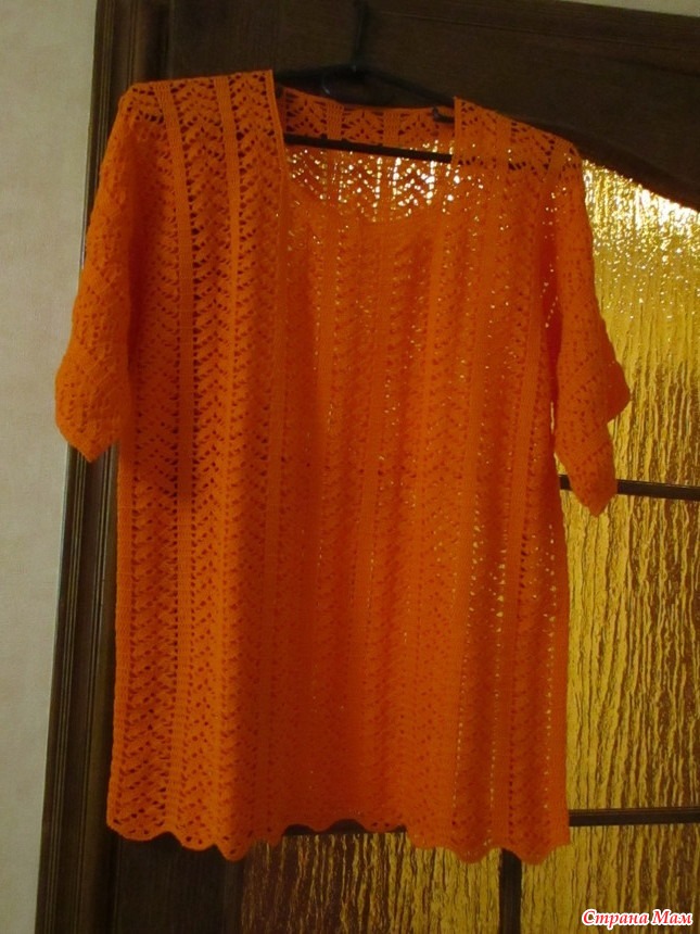 Ещё одна летняя туника из той же самой мягкой тонкой хлопковой пряжи, которую так приятно носить. Только на этот раз яркого цвета. Это даже не цвет "апельсин", как было обозначено на этикетке. Это цвет концентрированного морковного сока.