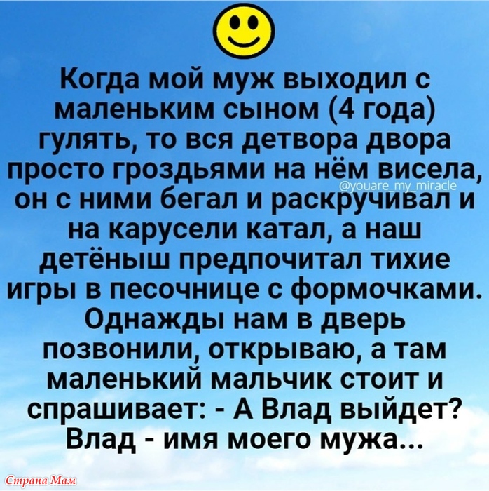"А Влад выйдет?"- У нас так детвора заходили за котами. У мамы были коты - Серафим (сиамский, старший) и Буся (еще подросток). Гуляли они вдвоем, Серафим впереди, Буся на полкорпуса сзади. При этом Серафим всегда Бусю защищал, водил кругами возле дома, потом они дружно сидели в травке, потом Серафим вел Бусю домой, а сам - на гулянку