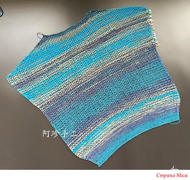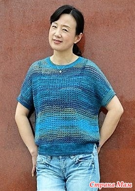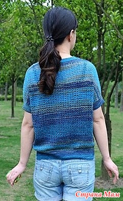Мерцающая бирюза. Джемпер со скошенными плечами и цельно-кроенными рукавами. Спицы.