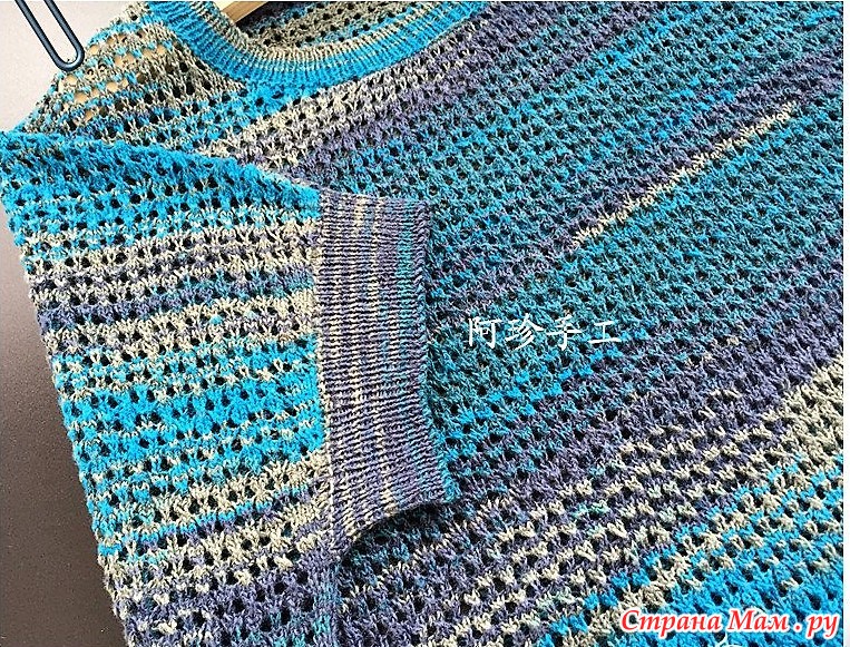 Мерцающая бирюза. Джемпер со скошенными плечами и цельно-кроенными рукавами. Спицы.