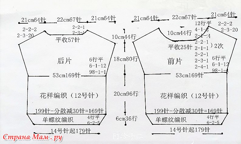 Плотность вязания: 10см * 10см = 32 петли * 44 ряда.