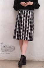 Юбка связана поперёк простым узором из пряжи трёх цветов, полосы придают стройность фигуре.