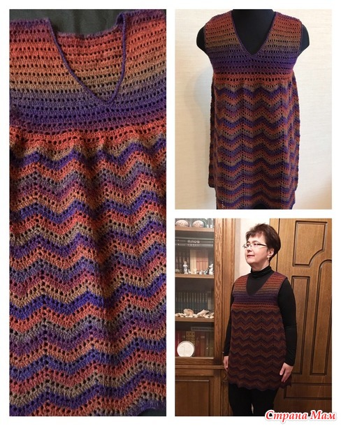 Когда-то давным-давно в 2014 году я участвовала в Он-Лайне «Туника крючком от китайских рукодельниц» и связала вот такую тунику - https://www.stranamam.ru/post/8380396/