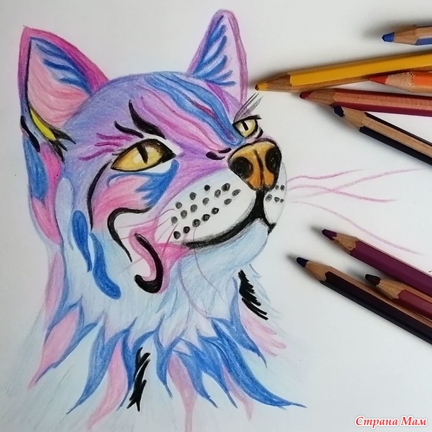 Первый рисунок я благополучно пропустила, рисовали реалистичного котика.
